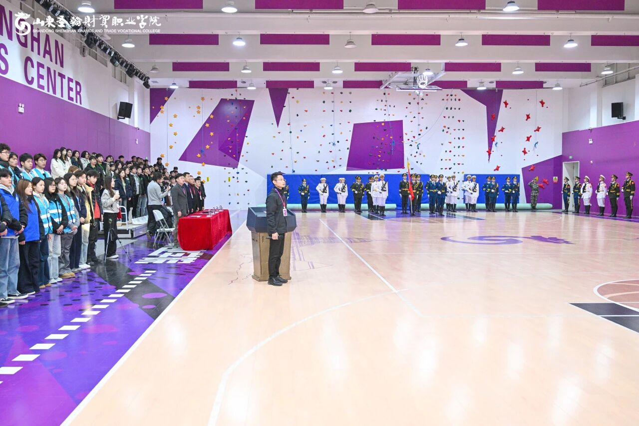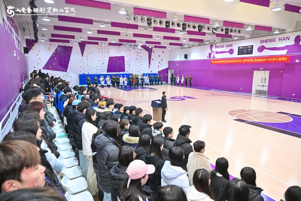 为厚植青年学子国防情怀,传承红色基因,凝聚强军报国力量,12月4日,山东圣翰财贸职业学院军事爱好者协会“逐梦强军路,青春绽芳华”2025年汇报展示活动在吉纯楼二号体育馆顺利举行。学校校长刘广耀出席活动,学校办公室主任魏树立、团委书记周光奇、副书记谢鑫同各校级组织、二级学院300余名师生代表参加活动,活动由学校团委教师刘军凯主持。