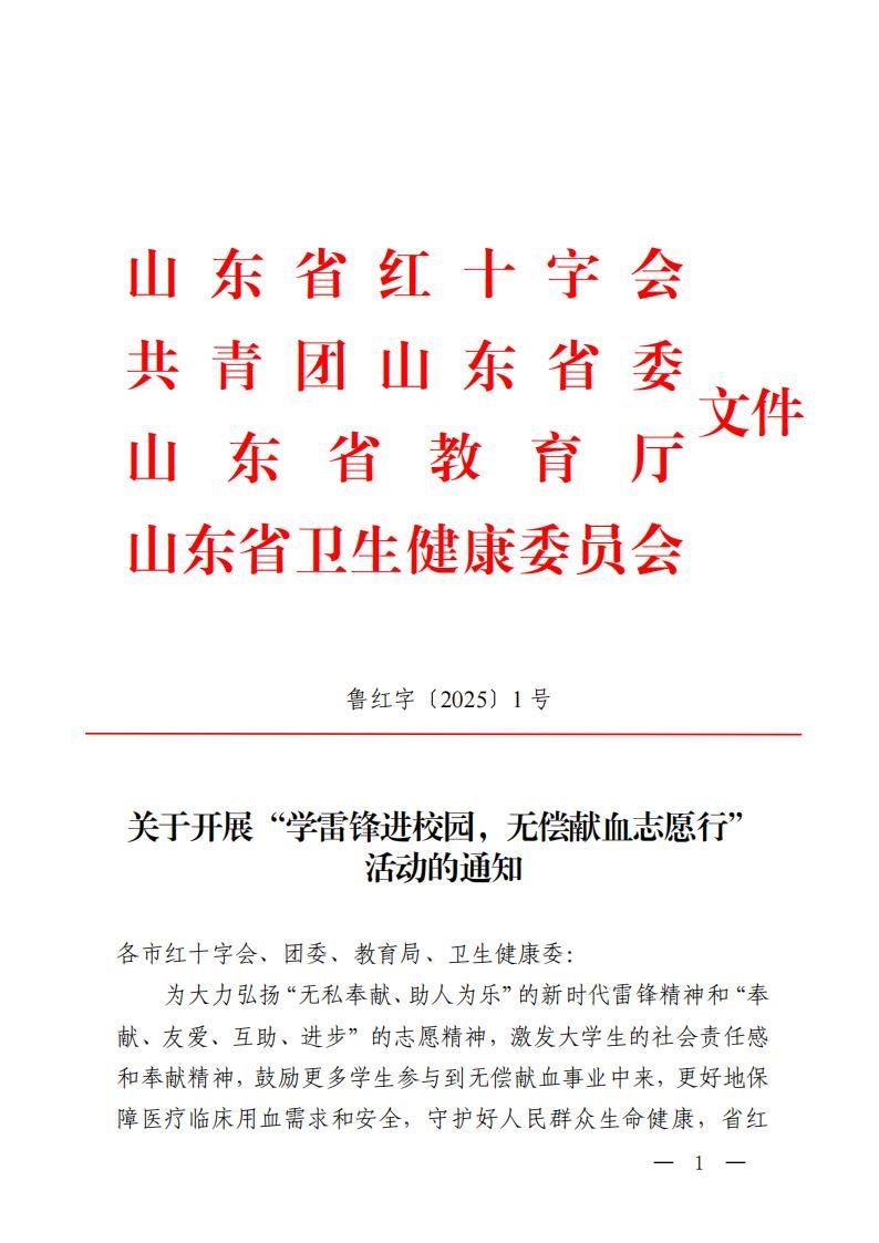 关于开展“学雷锋进校园,无偿献血志愿行活动的通知