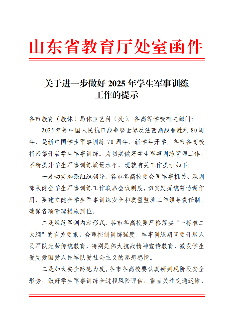 关于进一步做好 2025 年学生军事训练 工作的提示