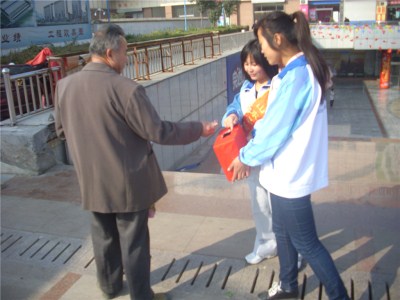上午7:30分,济南时报工作人员将报纸分发给各个高校。我校青年志愿者兵分两路(明珠广场、商业街)。短短半个小时,75份报纸全部义卖完毕。为了能够帮助更多的残疾儿童,我校青年志愿呼吁来往行人为残疾儿童进行募捐。一双双粗糙的大手、一双双稚嫩的小手,将一笔笔善款投入募捐箱。上午11:30分,义卖、募捐活动圆满结束。