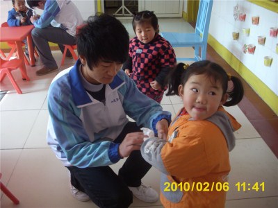 我校青年志愿者协会于2010年11月22日在党家庄红苹果幼儿园举行了以“丰富大学生活,促进幼儿成长”为主题的志愿服务活动。