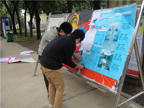9月18日上午9点30分,一群特别的“清洁工”带上工具准时集合,今天他们的清洁工作是校园星枫求知路丁字路口的宣传栏,本次活动是由校学生会的同学们自发组织的为“迎评做贡献”的活动之一。
