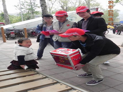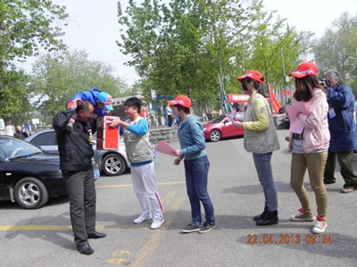 2012年04月22日,山东圣翰财贸职业学院青年志愿者响应济南市红十字会和市中区红十字会号召,织志愿者在英雄山北广场开展现场募捐活动,市民记者纪军、方宗水、褚福涛、海燕、徐建芳及新华社记者朱铮也加入我们活动中,为救助受到地震影响的灾区群众募捐。
