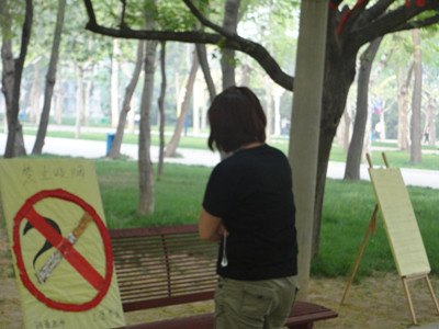2013年4月25日,我校青年志愿者协会在校园内举办了一次禁烟宣传活动。青年志愿者发挥自己的聪明才智利用捡来的烟头制作了一个个禁烟标本,并制作了相关的宣传海报。