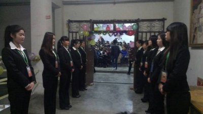 新年的钟声即将敲响,时光的车轮又留下了一道深深的印痕。在元旦佳节到来之际,山东联合大学社团联合会于2014年11月28日晚在老教学楼d5报告厅隆重拉开元旦联欢晚会的大幕。 当晚6:00,晚会礼仪引领系领导、观众陆续入场。团委田雨等老师出席本次晚会,各学院的同学闻讯纷纷赶来观看晚会。晚6:30,在颇富激情的开场舞之后,学校领导宣布晚会开始。首先是双节棍协会带来的套路表演“飞花梦影”,精彩的表演赢得了观众阵阵掌声, 紧接着英雄联盟带来的是今年最流行的一段舞蹈——小苹果,把观众的情绪瞬间带到了一个高峰,有的观众甚至跟着轻轻哼唱起来。晚会节目丰富多彩,逗乐的相声、感人的跪羊哺手语表演、唯美的孔雀舞、惊心动魄的跑酷表演都令观众的情绪跟着演员一起跌宕起伏,魔术社翟乐天和相声社高英杰表演的《另类的魔术》展现了语言的幽默,魔术为观众带来了别样的视觉盛宴,舞蹈协会带来的舞蹈更是掀起了晚会的高潮,同时也表现了年轻的90后积极地继承传统文化的可喜态度。
