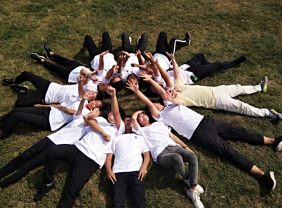 本次活动首先进行了分组,分别分为:一队天韵队、二队冲锋队、三队we are family、四队风姿队,五队苍穹队。此次的素质拓展由多个小项目组成:1、举案齐眉、由每个队的队员齐心协力完成,一根铁棍放在每个人的食指上,上下移动,手指不能离开铁棍。考验了团队的团结性与凝聚力。只有团结的团队才能以最快的速度完成且保持铁棍的笔直状态。2、冰岛求生、每队的队员必须全部站立于一张报纸上边,每个人都在思索如何尽可能多的利用每一寸空间,于是便有了踩脚,女生骑到男生的身上等多种方案,团结一心、无私奉献都是我们的代名词。3、穿越火线、每一个成员必须穿过一个横竖都不到五十厘米的方框,这是一个必须由集体配合,团结才能完成的游戏。虽然在开始时候遇到了很多困难,如第一个人要怎么过去,女生害羞等多方面的难题,但是最后还是成功完成,最后一个人有大二的学长学姐给安全送过去了。我们要相信自己的队友,同时还要相信在你们的背后还有一群大二的学长学姐在支撑着你们。4、信任背摔、站于一米三的高台上绑着手向后仰下去,由后边的人接着,一次次的成功说明了团结的力量是最大的,你的队友是你坚强的保护盾,要无条件的相信自己的队员。5、领导风范、每个团队围成一个圈争3分夺秒的报数,输得一队中所负责的部长要受惩罚,一次比一次多,一次比一次累,但是部长们却因自己的职责而都坚持了下来。在后面的几次中由于部长们体力有限,很多人想要为部长承担却因为规定而无能为力,于是更加齐心协力,为了不让部长受罚而更加卖力。6、风雨人生路、由一个不能说话的人带领一个蒙着眼睛的要穿越障碍,这就是说蒙着眼睛的人完全把自己交给了队友,完全相信了自己的队友,我们走过了学校中我们最熟悉的路,我们用另一种方式来再一次的感受了校园。但最后的一个障碍我们四个从来没有走过的,那就是学长学姐们的身体,我们是踩着他们的身体走过来最后一个障碍,把眼罩摘下来的一刹那很多人都心疼落泪。在这些活动中交错进行了多个趣味游戏,但我记忆犹新的是一个智力游戏,在矿泉水瓶盖上钉一个钉子,然后把11个钉子都放在那一个钉子上。这个游戏是让我们开发自己的脑筋,用自己的智慧去做完。但是最后只有一个队是由自己独立完成的,最后在老师的指引下剩余的其他队也顺利完成。