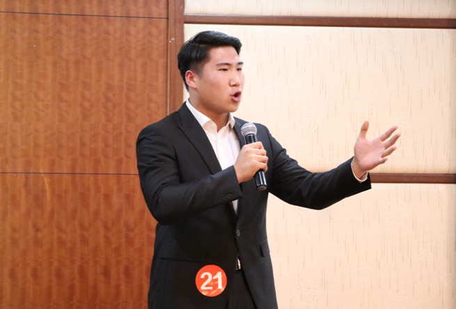 21号田震同学的“共产党的伟大之路”中讲到中国是一头沉睡的雄狮,而我们则是叫醒这头沉睡的雄狮的主人,得到了评委老师好评。