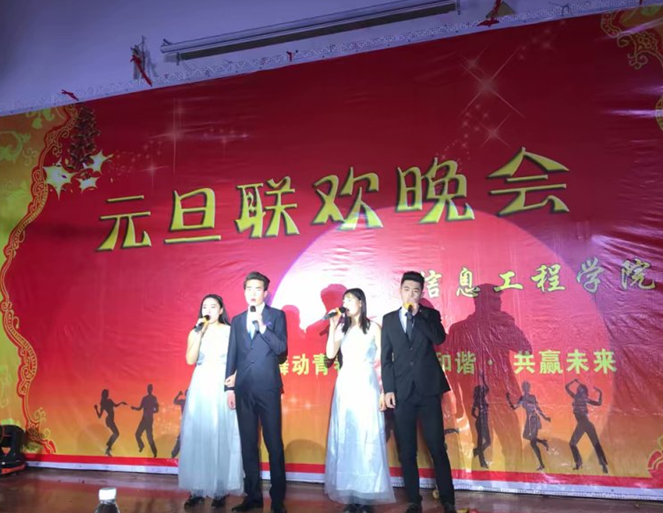 锣鼓声声辞旧岁,张灯结彩迎新年。灿烂光辉的2017年即将向我们告别,充满希望与挑战的2018年正微笑着向我们迈进。为庆祝元旦佳节,也为丰富校园文化生活,活跃学习氛围,给同学们一个真正展示自我风采和勇气的舞台。特此信息工程学院于12月26日星期二在第五报告厅提前举行喜迎2018元旦晚会。本次晚会规模宏大,创造性强。在相关领导的正确领导和关心支持下,在学生会的精心组织下,经过全体演员和主持人充分准备和共同努力,成功举办了此次晚会。