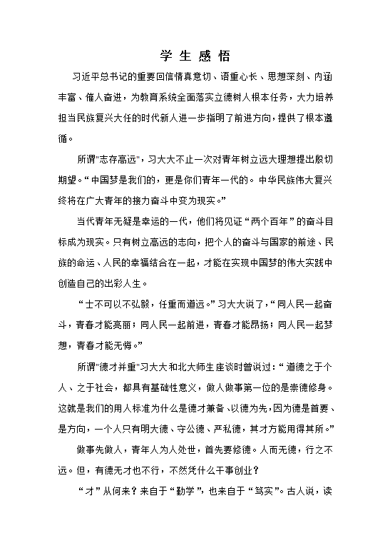 ⑥对于习近平总书记提出的八字箴言:勤学、修德、明辨、笃实,有何看法?