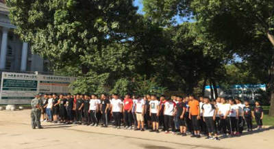 阳光照射着我们的影子,汗水浇灌着每一方我们走过的土地,这天的太阳格外明媚,阳光肆无忌惮地晒着我们的皮肤。不一会工夫,大家就都汗流浃背口干舌燥。教官依旧带着军人精神挺直身体给我们做表率,我们一分也不想停歇,继续保持艰苦奋斗的状态,在以后的学习生活中我们也要不惧困难,以军人为榜样,努力向前