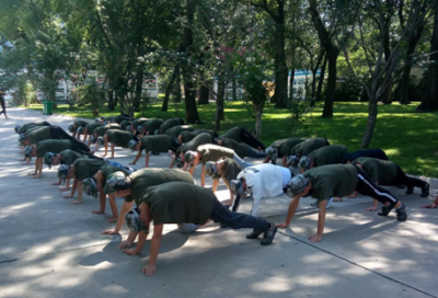 在教官的带领下,我们的军训生活开始了。在太阳的炽热烘烤下我们蹦着腿坚持站着军姿,汗水从额头流到下巴,身体偶尔摇摇晃晃,教官的一句“别乱动!”瞬间拉直了所有人的身体。腿酸的不能动弹,嘴唇渴到到发干,坐在坚硬且又炽热的水泥地上,有太多的规矩我们不能适应,不经感慨到:“军队真是太苛刻了。”但又有一股心里头的骄傲——为军队骄傲!