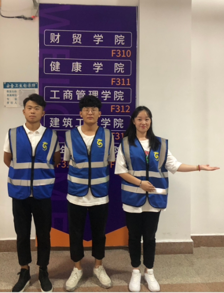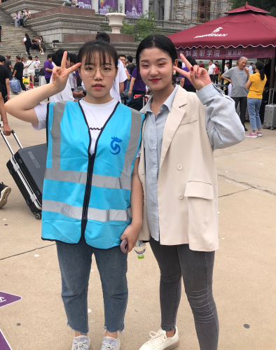 可爱的志愿者 忙碌中不忘卖萌 散发着青春气息