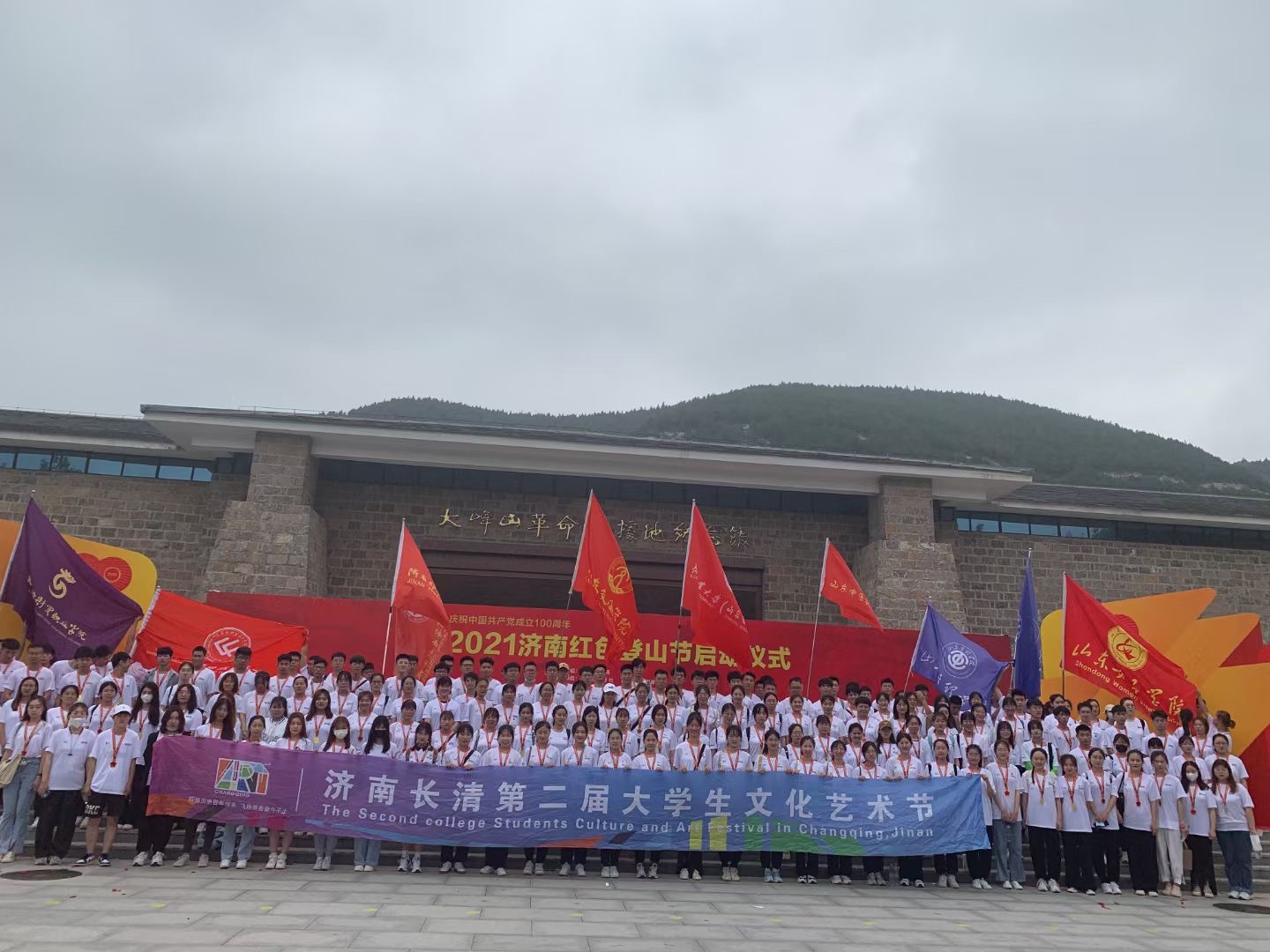 近日,山东圣翰财贸职业学院20名党员学生及团委带队老师参与,由长清区教体局举办的长清区第二届大学生文化艺术节--重走烽火路,参观大峰山党性教育基地。本次活动主题:辉煌历史百年传承、飞扬青春奋斗。2021年济南红色登山节,打卡红色革命基地,进行党史学习教育。