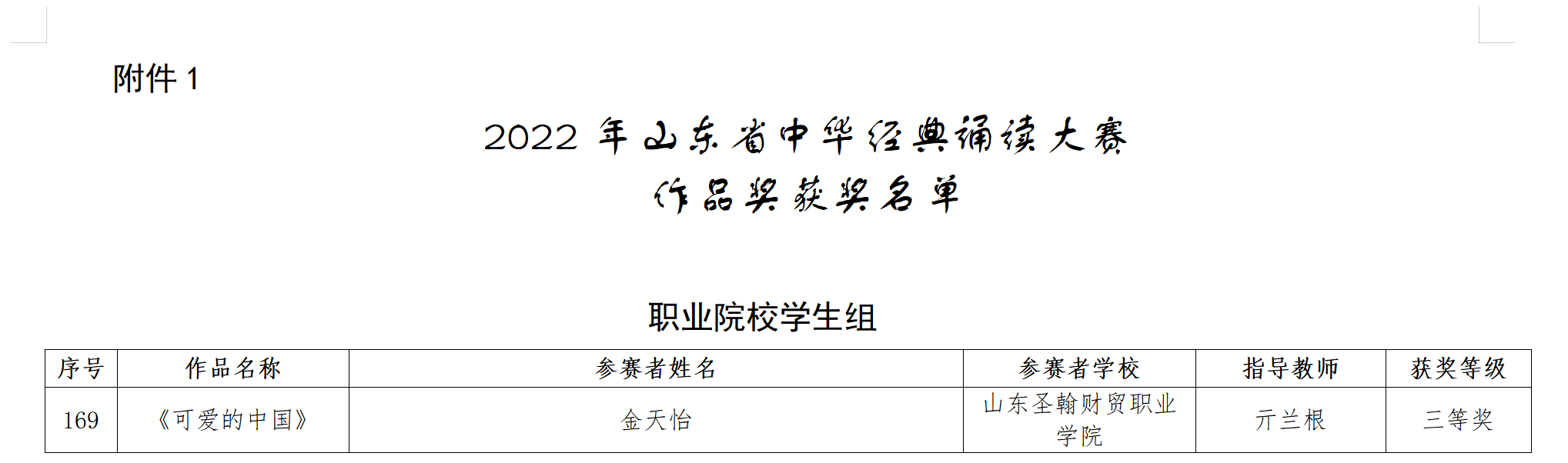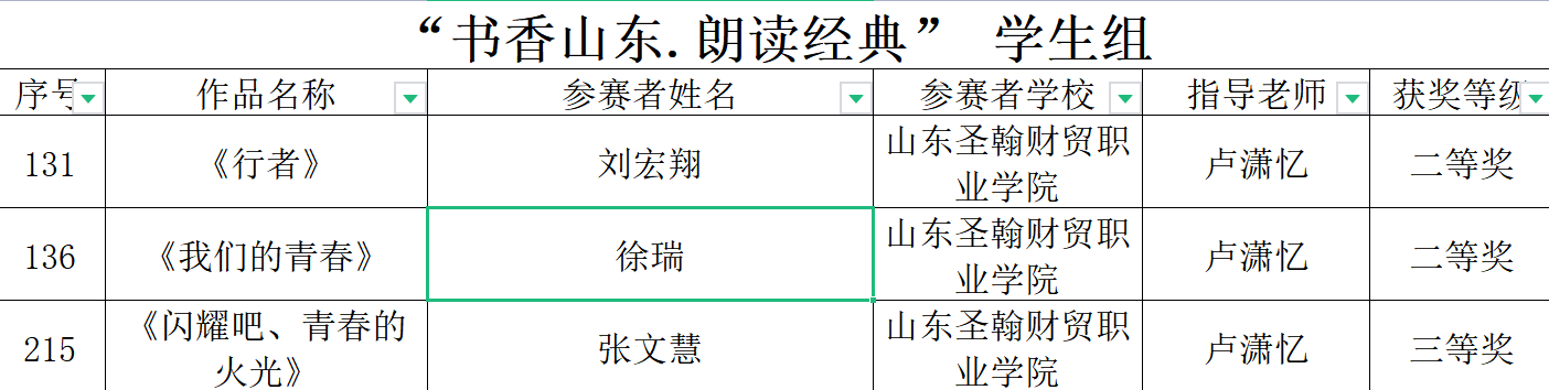 近日《山东省高校师生“奋进新征程建功新时代”阅读活动书香山东·经典诵读》《教育部办公厅关于举办第四届中华经典诵写讲大赛》落下帷幕,我校艺术学院学生徐瑞、刘宏翔、张文慧在《书香山东·经典诵读》活动中分别斩获二等奖和三等奖的好成绩,信息工程学院学生金天怡在《中华经典诵读大赛中》获得三等奖。