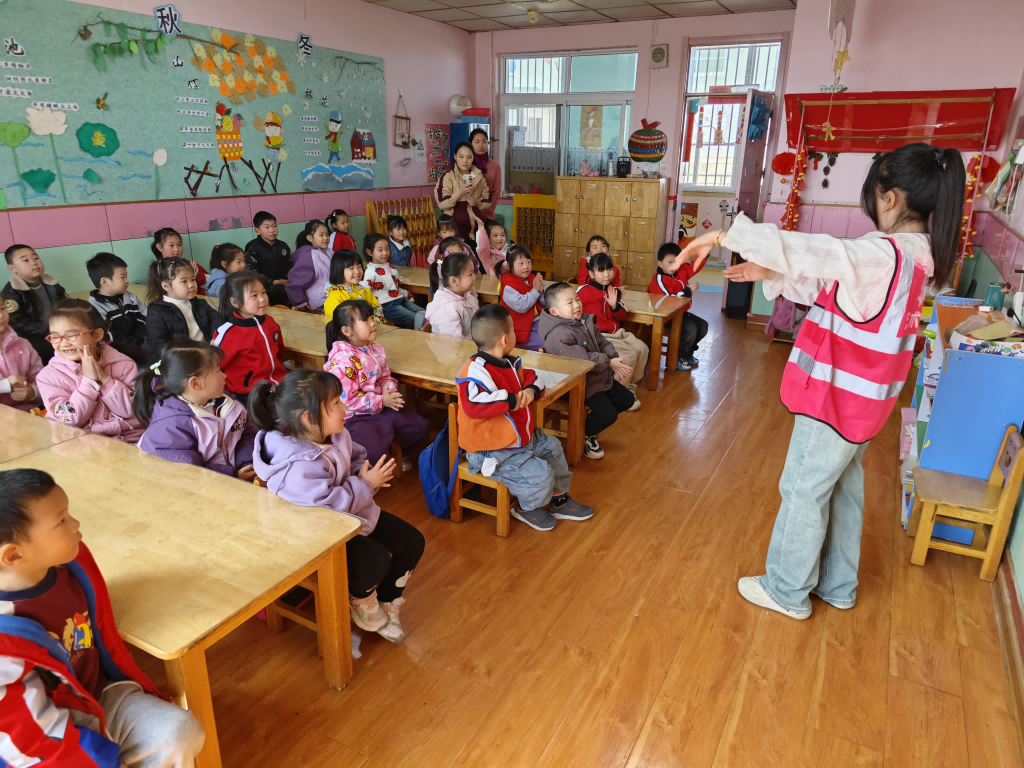 本次公益课讲课团队由我院的马焕焕、付洋、王达康3位老师带领学前教育专业的四名学生深入课堂,与孩子们进行亲切互动。
