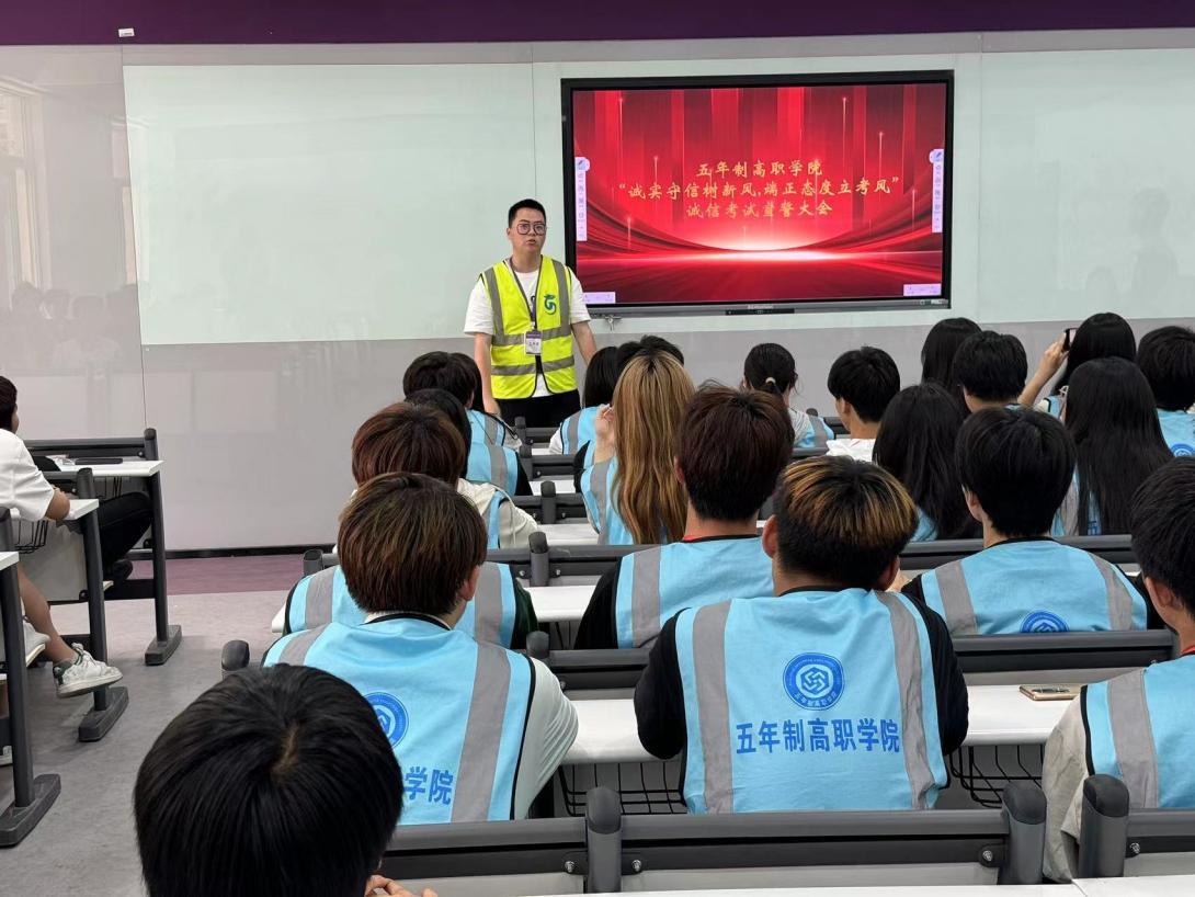 诚实守信,是中华民族的传统美德,是社会的道德基础,是每个新时代青年的立身之本。为了加强学风建设,培养学生的诚信意识,形成“业精于勤荒于嬉,行成于思毁于随” 科学规划,认真备考的意识,五年制高职学院于6月6日中午举行了以“诚实守信树新风,端正态度立考风”为主题的诚信考试宣誓大会,此次大会旨在通过集体宣誓的形式,强化学生对诚信考试的认识,端正态度,坚守底线,拒绝舞弊,营造公平、公正的考试环境。