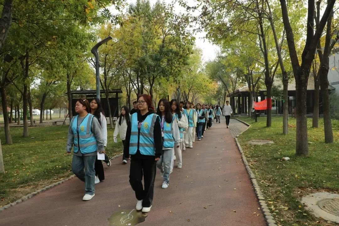 在张夏街道王庄村,同学们走进王庄村郊野公园,登山赏景、打卡拍照,定格下与大自然亲密接触的美好瞬间,共同感受秋天的季节特征与自然之美,探索、发现张夏蕴含的文旅发展潜力。