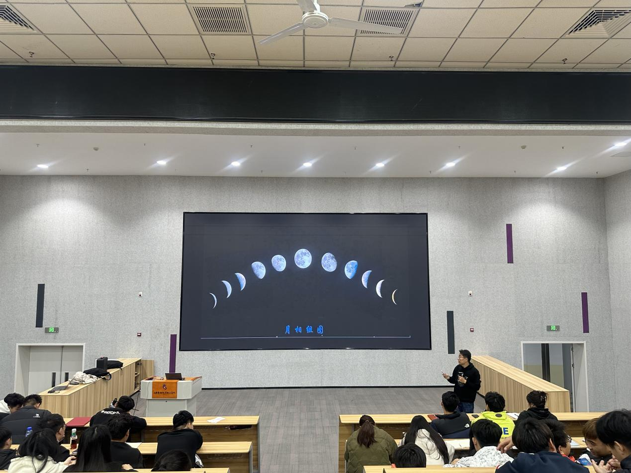 为了让同学们对天文科普知识有更多的了解,天文科普讲座-《月相探秘》在吉纯楼第三报告厅成功开展,此次讲座吸引了众多天文爱好者参与其中,讲座由协会指导老师王兆青主讲。
