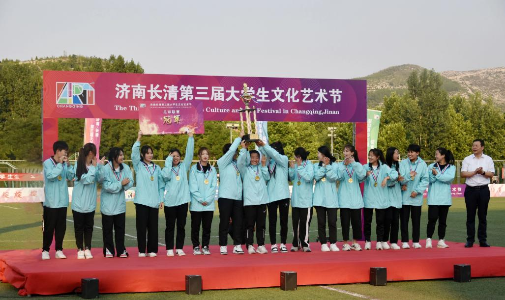 6月5日,济南长清第三届大学生文化艺术节足球联赛第八个比赛日的两场比赛在齐鲁工业大学(山东省科学院)足球场展开激烈争夺。我校男子组对战山东劳动职业技术学院。赛场上,运动员不断奔跑,脚下动作灵活,将运球、铲球、抢断、过人、射门等动作运用得出神入化,将个人球技与团队战术完美融合,将自身运动潜能激发到极致。经过激烈的角逐,男子组山东圣翰财贸职业学院获得本届大学生文化艺术节足球联赛季军。女子组山东圣翰财贸职业学院获得本届大学生文化艺术节足球联赛冠军。