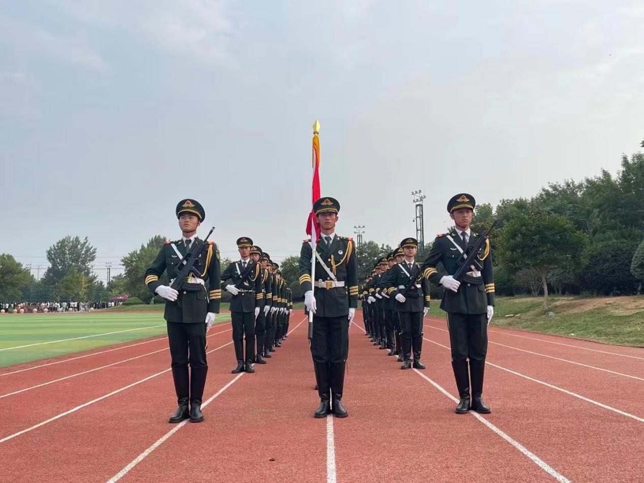 当一声嘹亮的“齐步!走!”划破湛蓝的天空,山东圣翰财贸职业学院国旗卫士们迈开整齐有力的步伐向前推进。九月的天气微凉,却难凉国旗卫士眼中炽热的光芒,正步声起,一声声仍是那么铿锵有力,气震山河!