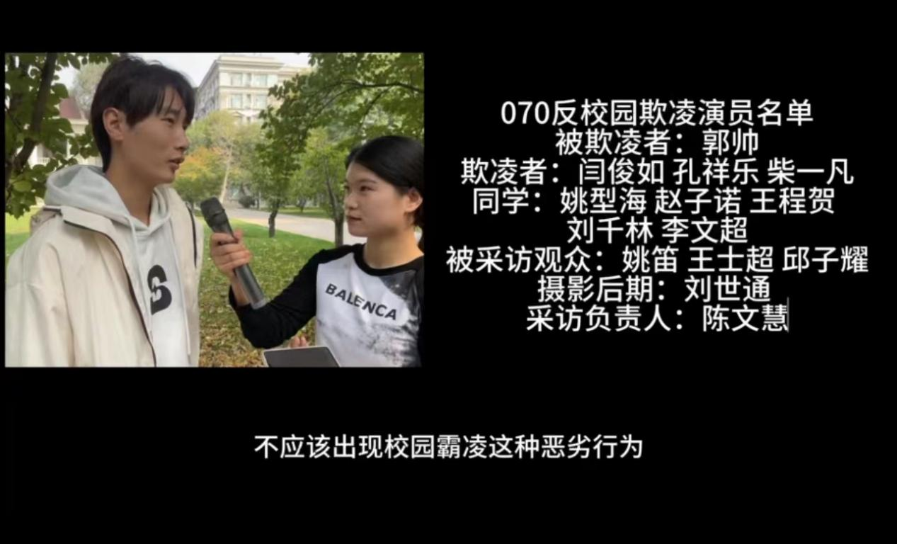 健康学院、国际交流学院与学生会制作了“070勇敢者行动”的宣传视频,用情景剧的形式演绎真实而生动校园欺凌情况,倡导大家,远离校园暴力,反对校园欺凌。同学们也深刻地意识到预防校园欺凌、共创和谐校园的紧迫性和必要性。激发了校内学生“070勇敢者行动”,扶助弱小、助力青少年健康成长的强烈意愿。