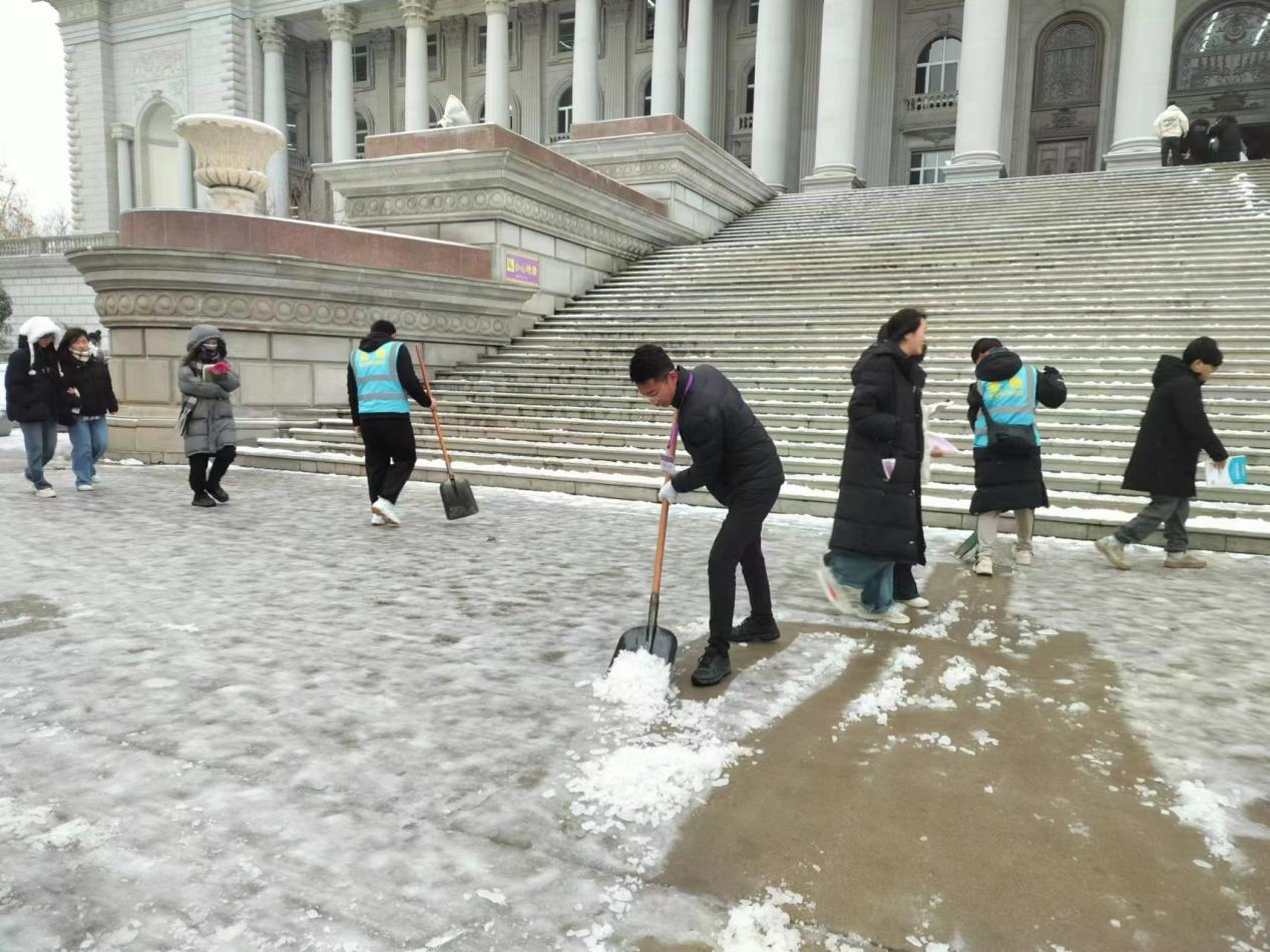 12月11日,一场大雪给山东圣翰财贸职业学院学校披上了盛装,同时也给师生们出行带来了安全隐患。为积极应对雨雪冰冻天气,保障师生安全畅通出行,山东圣翰财贸职业学院青年志愿者协会第一时间开展义务扫雪除冰活动,以实际行动践行初心、担当使命。