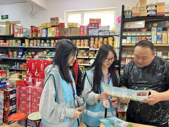 活动中,大学生志愿者们身穿蓝马甲,为过往居民宣传发放垃圾分类手册,向社区居民普及具体的垃圾分类方法,倡导树立“垃圾分类引领低碳生活新时尚”理念,推动社区居民对垃圾分类习惯的养成,增强社区居民垃圾分类意识。
