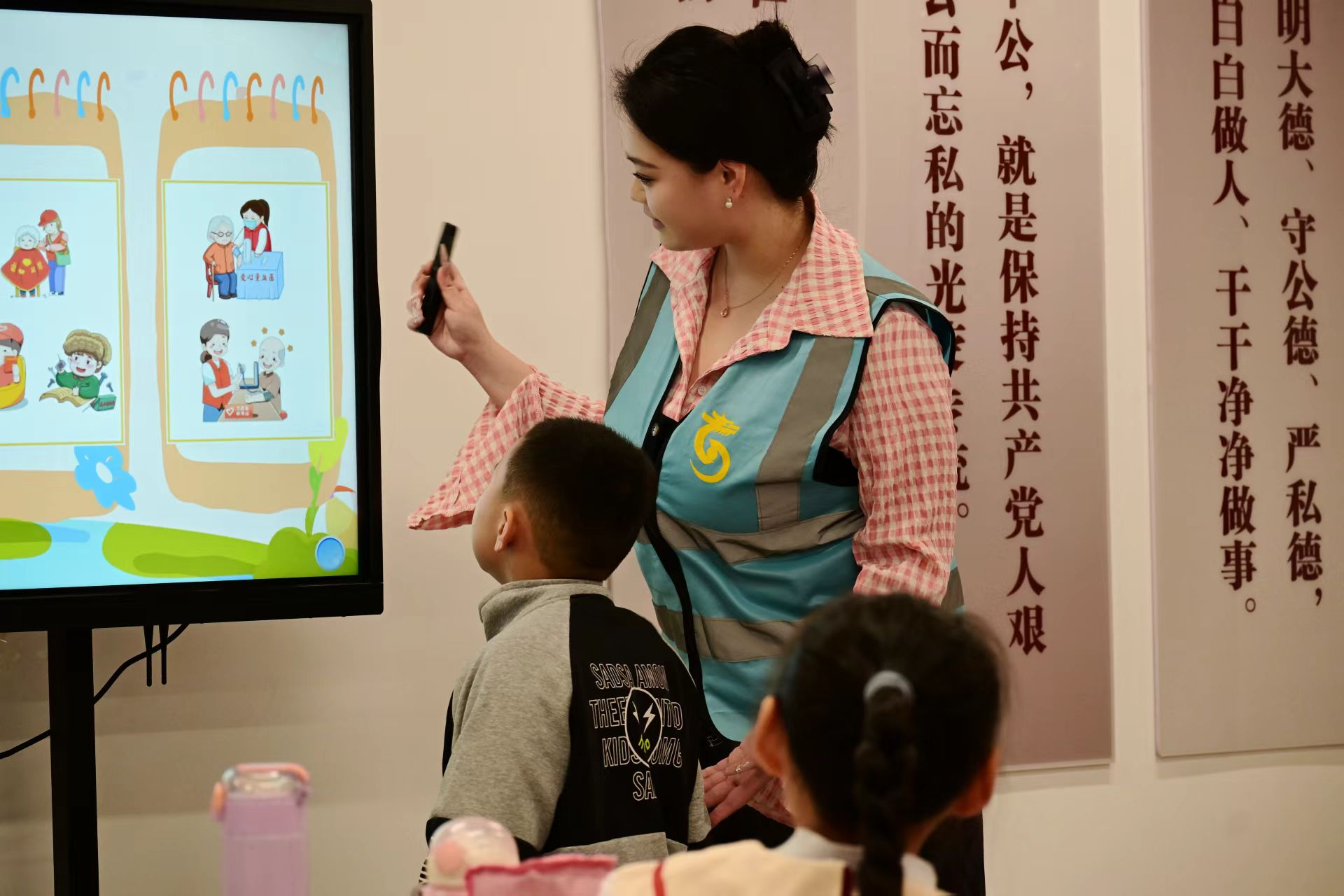 在互动答题环节,现场气氛热烈非凡。小朋友们踊跃举手,积极抢答,稚嫩的声音中充满对知识的渴望和对雷锋精神的思考。每一次回答正确,都赢得志愿者们的赞扬和鼓励,进一步激发了孩子们探索雷锋精神的热情,加深了他们对志愿服务意义的认识。