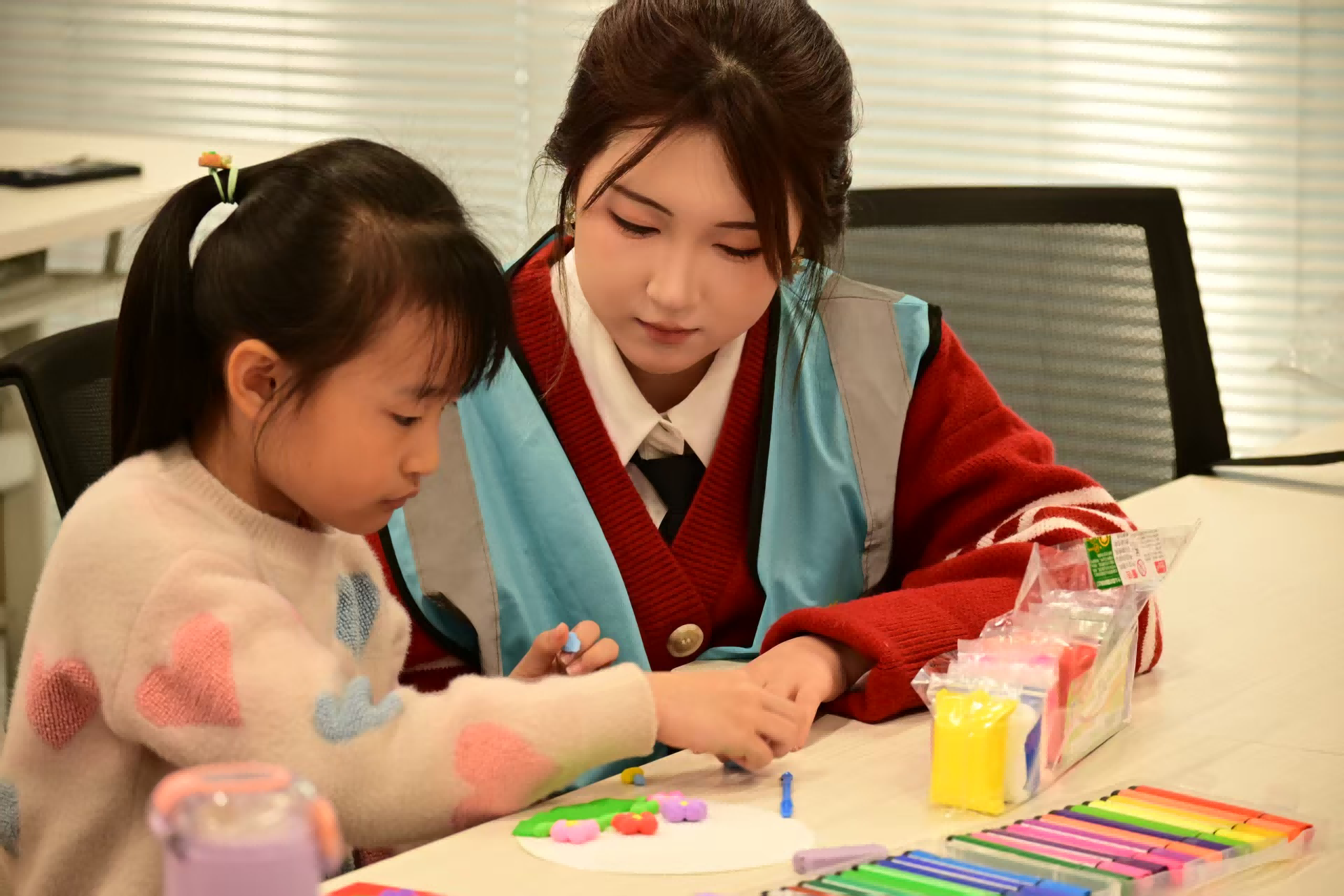 应小朋友们的强烈意愿,活动进入手工创作环节——用超轻粘土制作“小花园”。志愿者们耐心辅助,小朋友们充分发挥想象力,搓、捏、揉、压,将手中的粘土变成了形态各异、生机勃勃的花园景象。孩子们沉浸在创作的乐趣中,感受着动手的快乐和团队协作的力量。