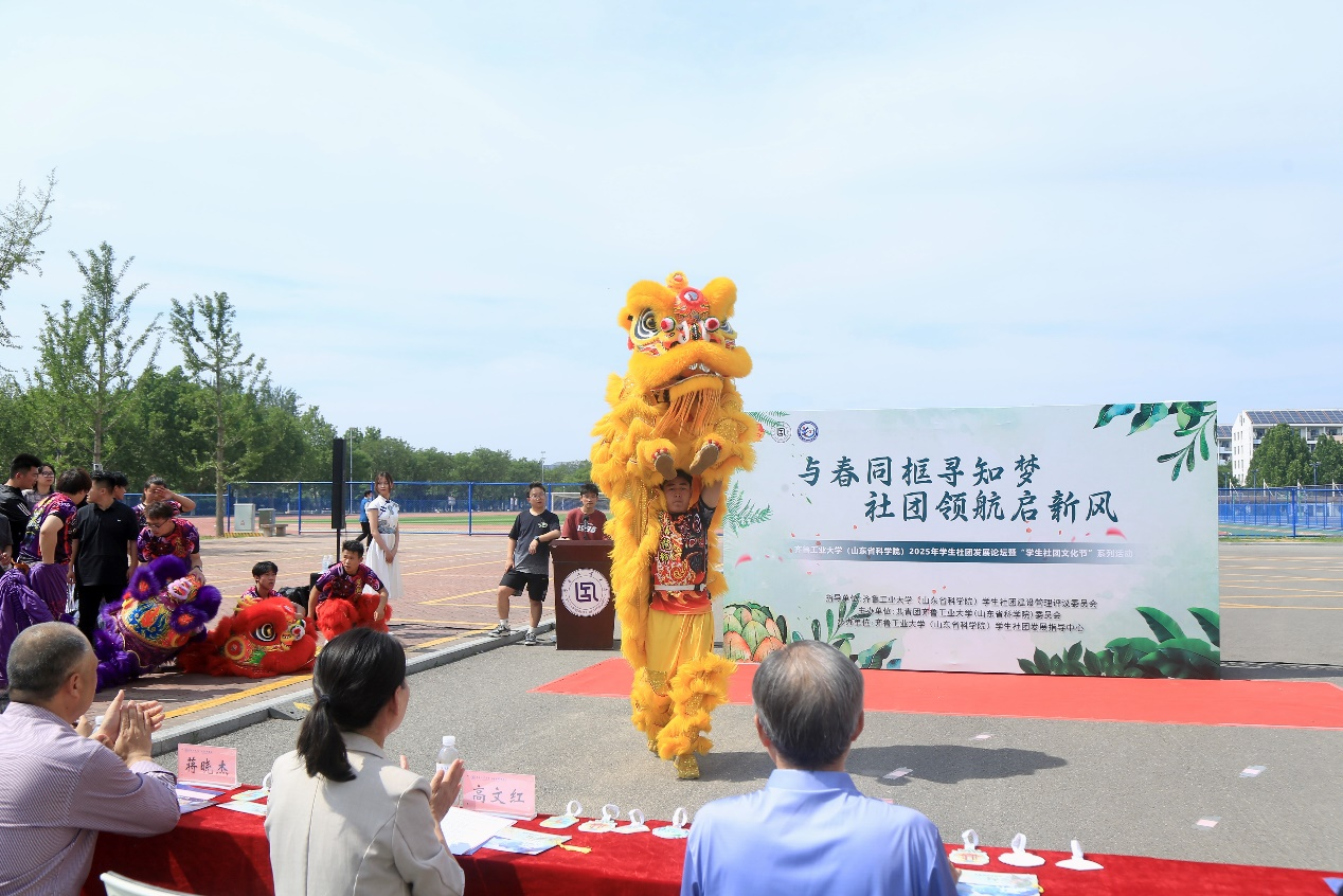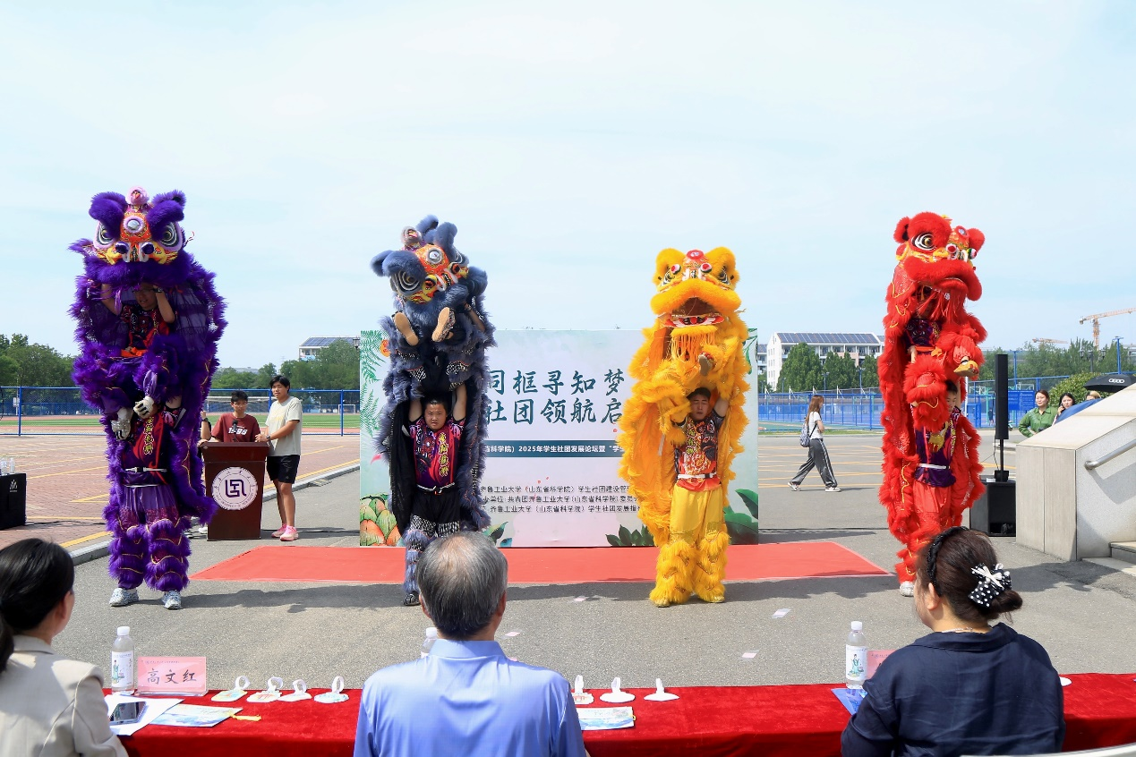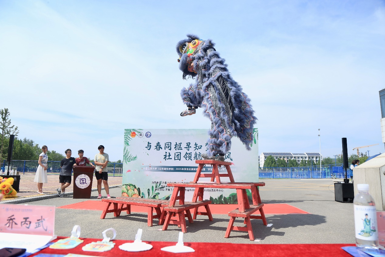 近日,山东圣翰财贸职业学院艺术学院龙狮协会应邀亮相齐鲁工业大学(山东省科学院)举办的2025年学生社团发展论坛暨“学生社团文化节”活动,协会深耕传统民俗文化领域,设有鼓锣镲、舞龙、舞狮、空竹等多个特色项目,积极探索传统文化“两创”应用路径,致力于让古老技艺在新时代焕发全新活力。在此次文化节上,协会以醒狮跳八仙凳这一极具特色的表演惊艳登场,为活动献上一场刚柔并济、韵味十足的非遗盛宴,奏响文化节精彩序章。