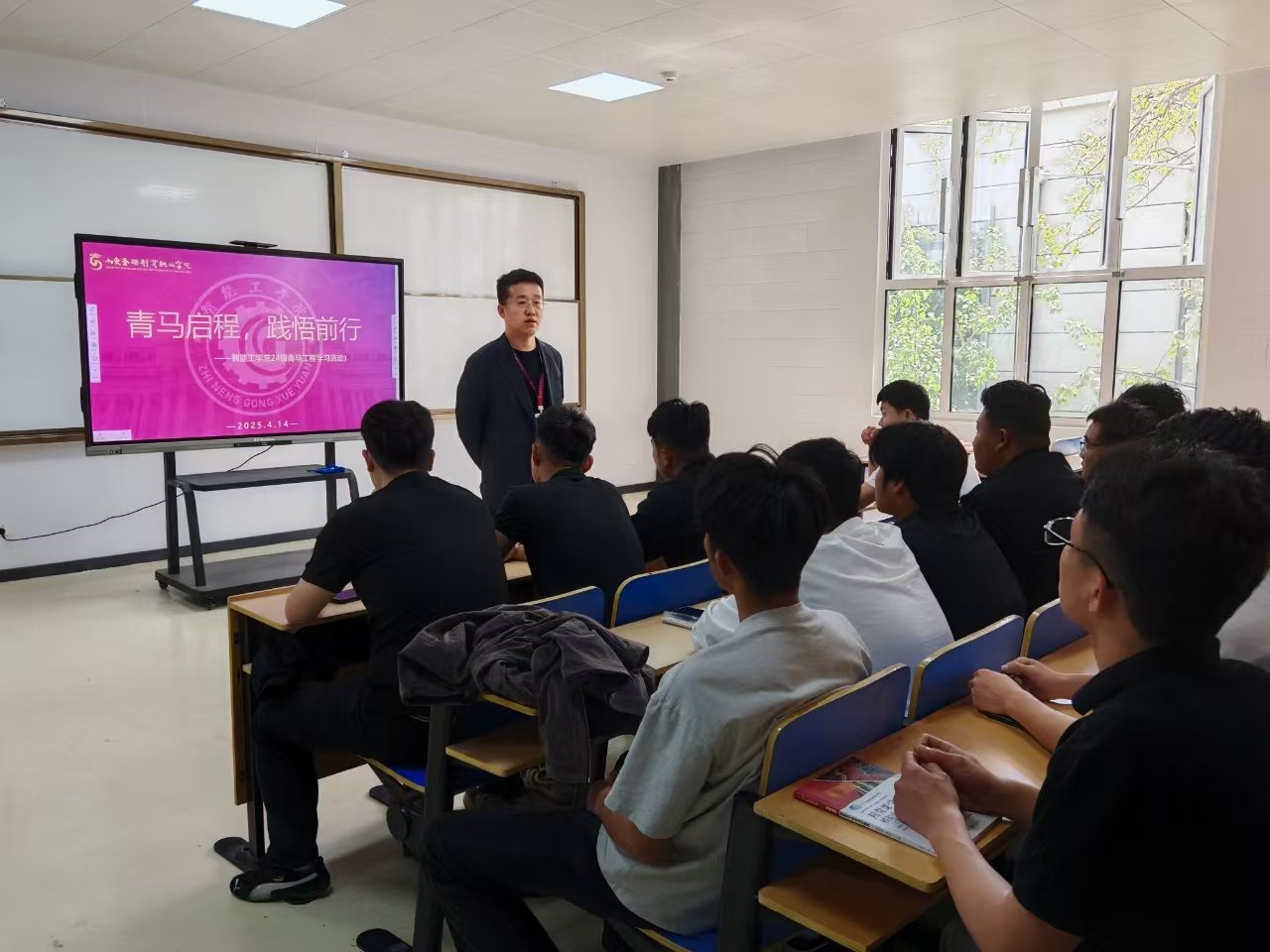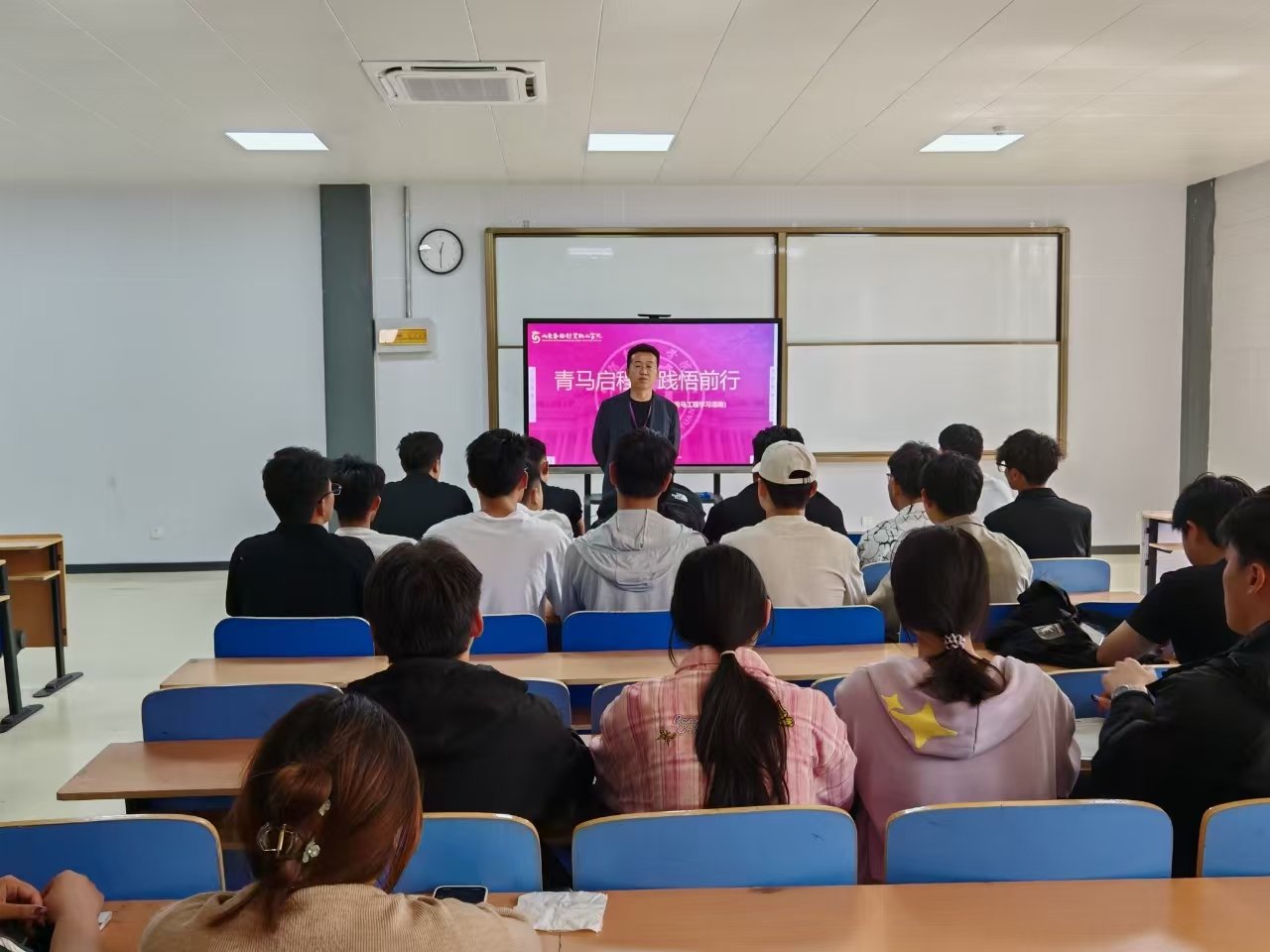为响应国家号召,聚焦青年成长需求,近日,智能工学院在实训楼1—301 开展 “青马启程,践悟前行” 活动,为24级青马工程全体成员及主席团成员搭建深化学习与思想碰撞的平台,推动青年学子在马克思主义理论学习道路上坚定前行。