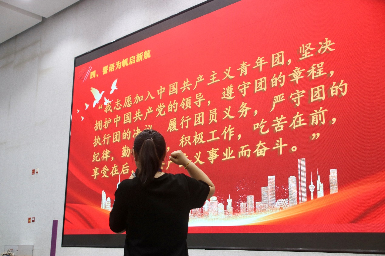 为全面贯彻习近平新时代中国特色社会主义思想和党的二十大精神,深入践行党、团、队一体化培养体系要求,强化入团仪式教育,6月12日艺术学院联合信息工程学院、商学院,在吉纯楼第四报告厅隆重举行了以“团徽闪闪 灼灼其华”为主题的新发展团员入团仪式。