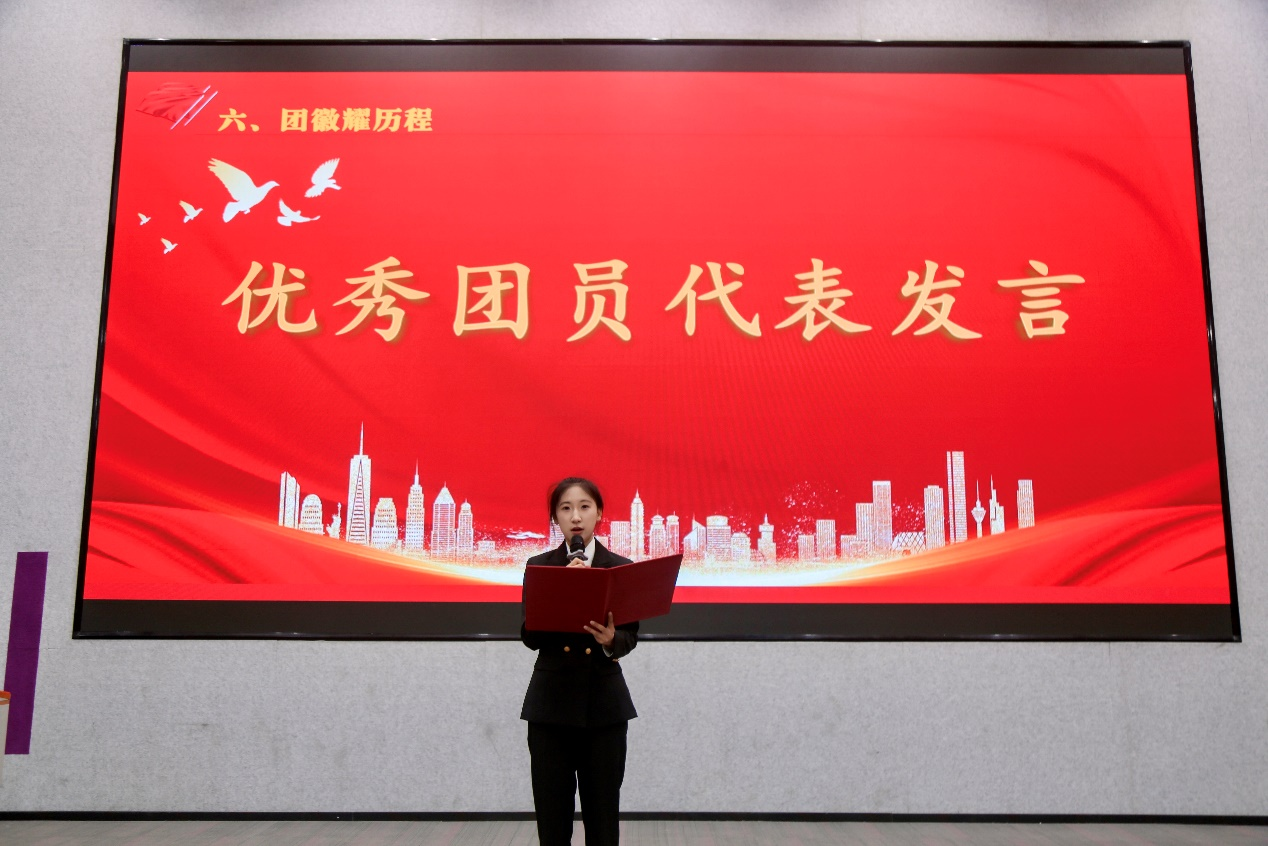 优秀团员代表高冉同学结合自身经历,分享了在共青团组织中成长的感悟,鼓励新团员珍惜时光,积极进取,不断提升自我,为团组织增光添彩。艺术学院团总支书记薄纯成在向新团员提出希望和要求时,表达了对新团员加入共青团的热烈祝贺,强调共青团作为党的助手和后备军,肩负着为党培养社会主义建设者和接班人的重要使命。他期望新团员们坚定理想信念,牢记入团初心,以团员标准严格要求自己,勤奋学习,积极奉献,在实现中华民族伟大复兴的征程中贡献青春力量。