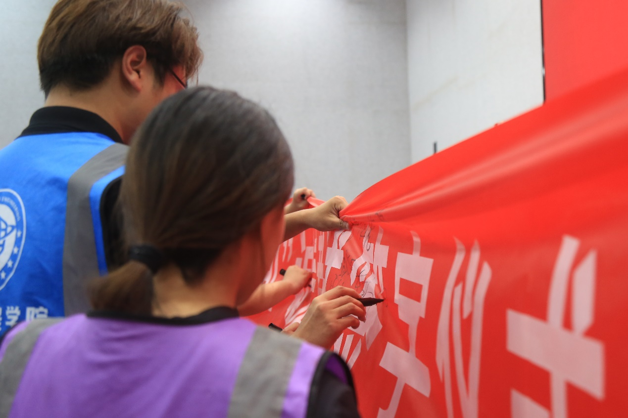 在“以诚应考守底线,用信筑梦向明天”宣誓环节,领誓人2024级运动训练1班郑永康同学,带领全体学生庄严起立,以铿锵有力的声音宣读誓词:“我宣誓,严格遵守考试规则,杜绝作弊,诚信为事.......,做一名讲诚信的优秀大学生!”誓言字字千钧,彰显了学子们坚守诚信、维护考风的坚定决心。随后,“以信为帆破学海,以诚作尺量真知”签字仪式有序开展,三院学子依次在主题横幅上郑重签名,将诚信承诺化为笔尖印记,凝聚成共同守护考试公平的集体力量。