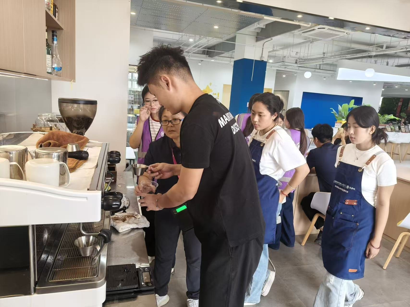 在酒咖体验区,新生们化身“品鉴师”,参与咖啡拉花实践与调酒文化沙龙。专业咖啡老师演示了拉花技巧,学生们动手制作“商学院专属拉花咖啡”。2025级工商管理专业新生表示:“一杯咖啡的定价涉及供应链管理、品牌定位和用户体验设计,这让我对商业细节有了更直观的认识。”