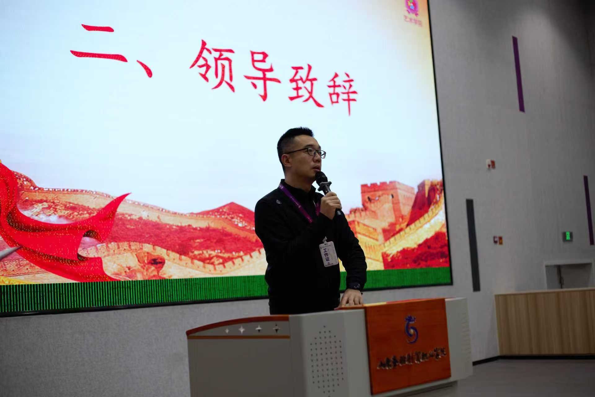 在全程热烈的掌声中,院长亓睿发表讲话。首先他充分肯定上一届学生会干部为学院发展做出的积极贡献,并对他们的辛勤付出表示感谢,同时对新一届提出三点期望:一是坚定信念,做好学院与同学的“桥梁纽带”;二是牢记宗旨,为同学办实事、解难题;三是平衡学工,锤炼能力、全面发展。最后,他鼓励大家以青春之朝气勇于担当,以进取之姿态大胆创新,共同为建设更具活力与温度的艺术学院贡献青春力量。
