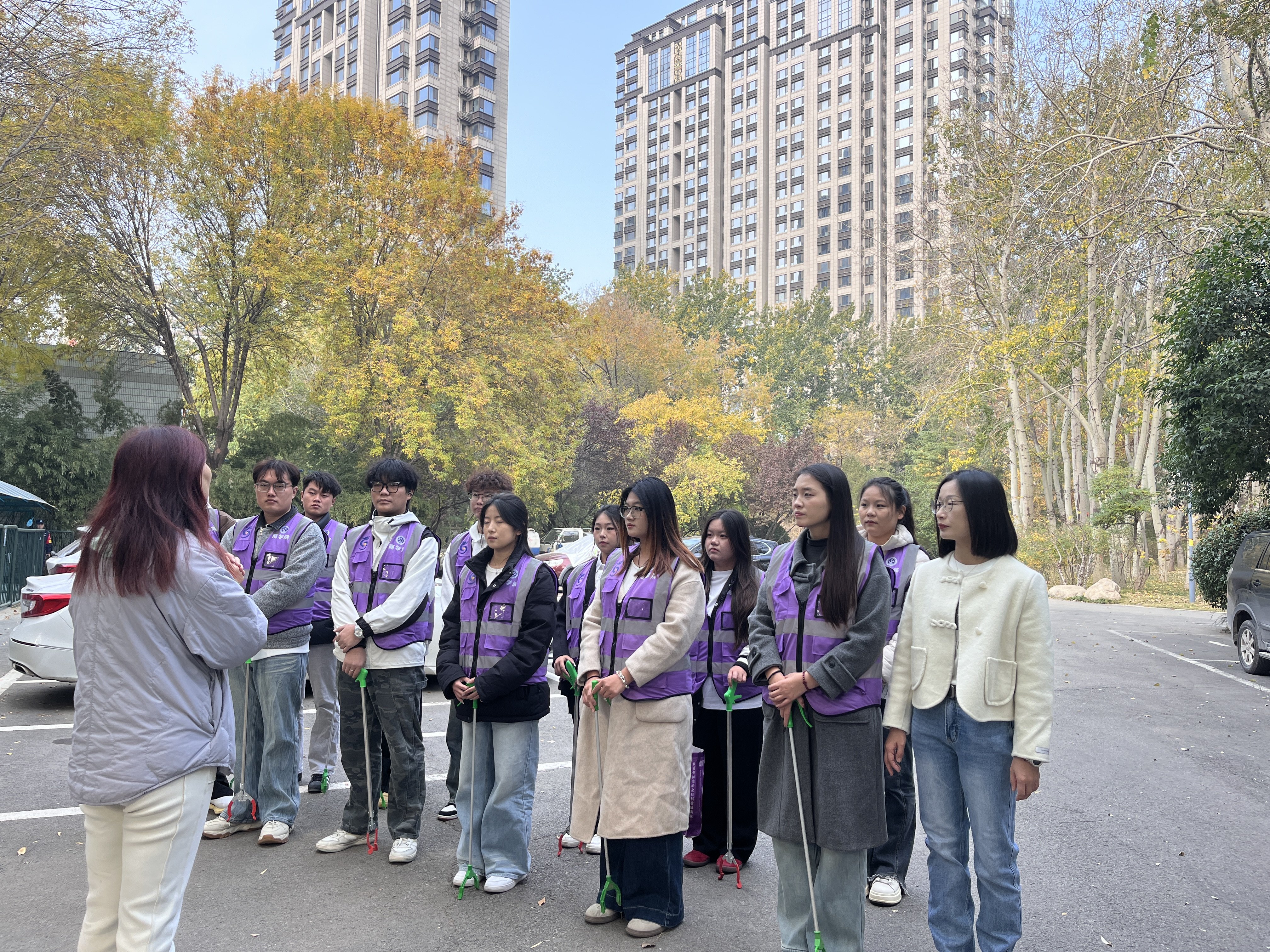 活动当天,志愿者们身着统一服装,带着清洁工具早早抵达公园。初冬的森林公园虽少了盛夏的繁茂,却自有层林尽染的韵味,而散落的垃圾却与这份景致格格不入。