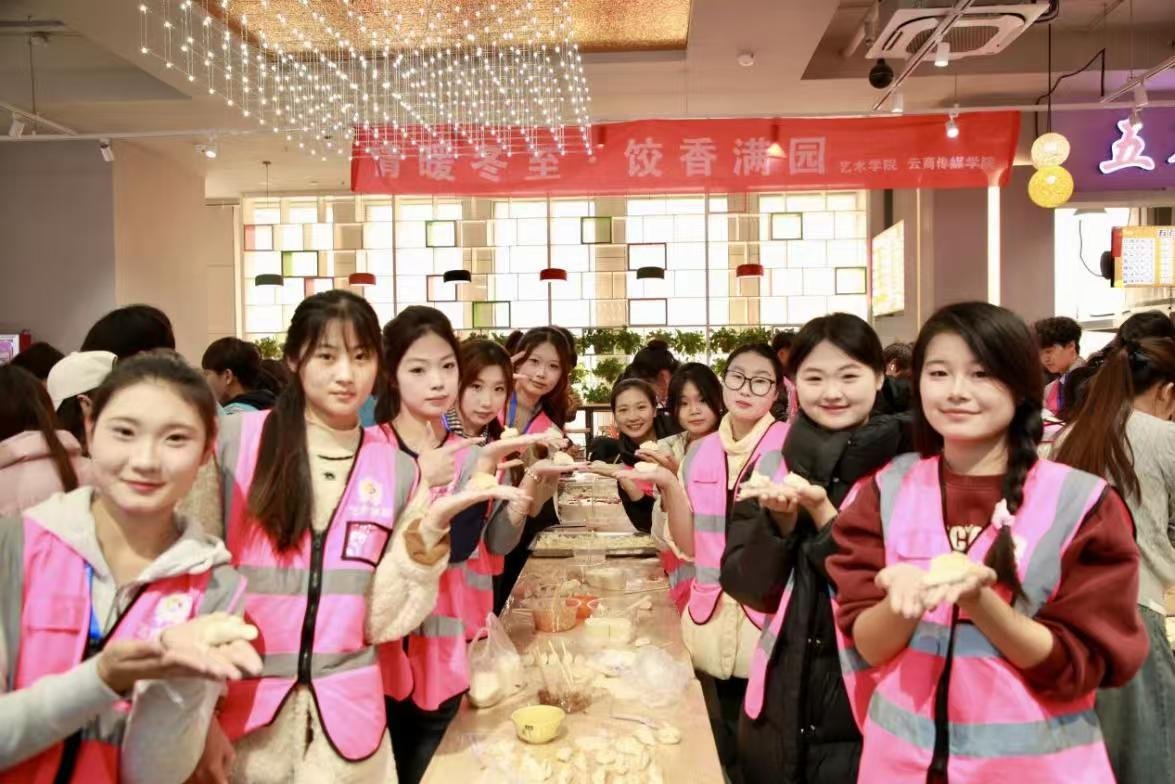 冬至阳生,岁回律转。为弘扬中华优秀传统文化,丰富校园生活,增进师生交流,12月19日下午,艺术学院与云商传媒学院联合圣翰膳堂,共同举办了“情暖冬至·饺香满园”冬至包饺子主题活动。学校副校长阎磊、校团委书记周光奇、云商传媒学院院长李学治、餐饮服务中心处长姚立民,以及学生处、艺术学院相关领导、辅导员代表与百余名学生齐聚一堂,共迎冬至,同享劳动乐趣。