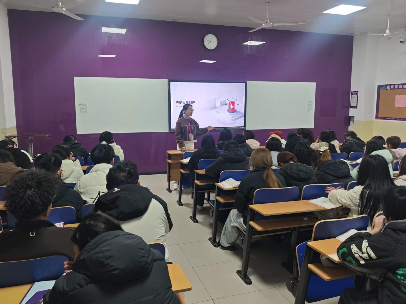 本次班会紧扣校园安全核心内容,围绕预防诈骗、国家安全、人身财产安全、消防安全、心理健康、食品卫生与疾病预防六大方面展开系统讲解。辅导员结合真实案例与校园常见安全风险,用通俗易懂的语言,向同学们普及安全知识与应对技巧。在预防诈骗环节,重点讲解了网络刷单、冒充客服、校园贷、虚假中奖等高发诈骗类型,提醒同学们牢记“不轻信、不透露、不转账”,守好个人财产安全。针对国家安全,辅导员深入阐释总体国家安全观,引导同学们树立国家安全意识,自觉维护国家利益与校园安全稳定。