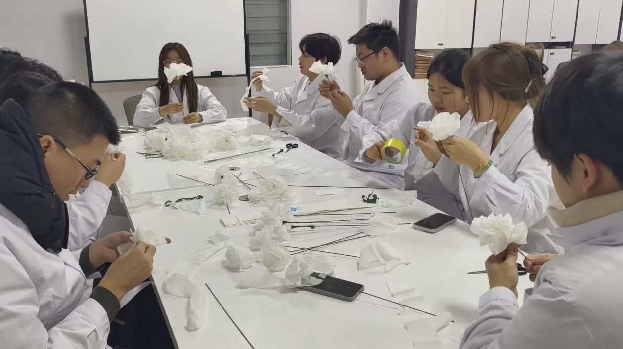 祭奠环节中,全体人员肃穆而立,共同缅怀大体老师的无私付出。主持人宣读祭奠意义,引领大家感念大体老师“以躯为烛,照亮医学之路;以爱为灯,传承医者仁心”的崇高精神。随后,主持人介绍了素色皱纹纸花的象征意义——永不凋零的纸花,既是对大体老师永恒的敬意,也象征着生命延续与奉献精神的不灭。