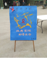 2015年12月10日中午,青年志愿者们在圣翰膳堂前摆出签字布并发放红丝带。受到同学们的热烈欢迎,纷纷上前签字明志,领取红丝带。这个活动获得同学们一致好评并表示:此次活动很有教育意义,既给大学生普及了知识,也让大学生们认识到问题的严重性,能够洁身自好,健康成长。
