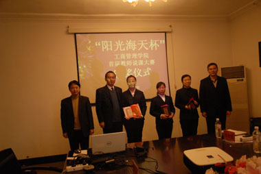 “阳光海天杯”工商管理学院首届教师说课大赛决赛于2010年11月11日上午8:30在办公楼二楼会议室举行。比赛邀请了山东圣翰财贸职业学院副校长刘岗教授、刘波教授、副校长杨长江同志、北京阳光海天停车管理有限公司常务副总经理胥士伟先生、山东圣翰财贸职业学院校长助理贝广勇同志、山东圣翰财贸职业学院教学督导委员会督导教学委员会副主任委员孙即孔教授、张法科教授,及各二级学院教学院长。本次大赛由工商管理学院主办,北京阳光海天停车管理有限公司赞助。