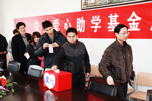 在校党委的积极努力下,“山东圣翰财贸职业学院党员爱心助学基金”启动仪式在3月21日下午举办。会上党委副书记、副校长杨长江同志做了重要讲话,号召全体党员同志要弘扬中华民族扶危济贫、助人为乐的传统美德,坚持以人为本的重要思想,积极的参与党员爱心基金活动。爱心助学基金启动以后,将随时接受党员、群众以及社会各种形式的捐助,接收捐款地点设立在党委办公室。