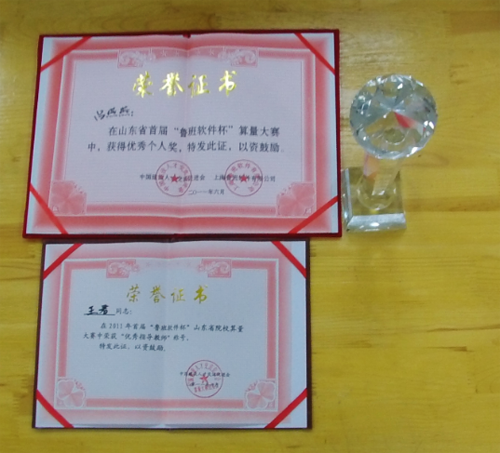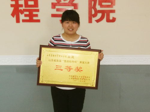 近日,首届“鲁班软件杯”山东省高职院校算量大赛在山东教育大厦成功举办,我校建筑工程学院王君老师带领09造价吕燕燕、刘伟、孟月圆三位同学参加了本次比赛,获得了团体三等奖,吕燕燕同学获优秀个人奖,王君老师获优秀指导教师奖。
