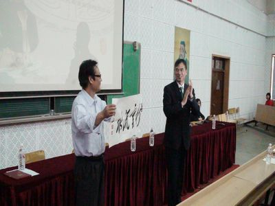 本期活动的主讲嘉宾为孔子基金会经典诵读推广老师王洪铁先生。王老师2008年出版了《大哉孔子话春秋》,2009年出版了《诸子百家话战国》;曾担任动漫剧《少年闯春秋——孔子篇》总编剧;现正编写大型系列电视剧《十长人》剧本。活动初始,杨校长为王老师颁发了新儒商坛特聘教师聘书,并带来了刘大文校长的新书法:行云流水,室雅人和,正式赠与王老师。