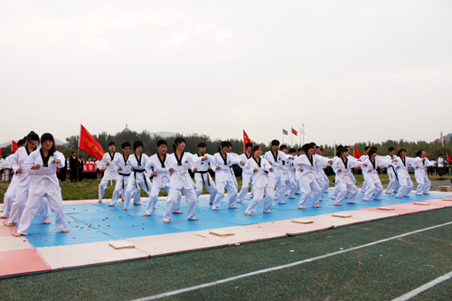 随后的跆拳道表演,同学们通过品势、搏击、击破三个环节为在场领导、师生奉献了一场精美绝伦的视觉盛宴,跆拳道教练陈仲博一掌击破八块大理石把全场的气氛推向了高潮……