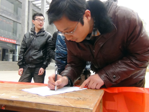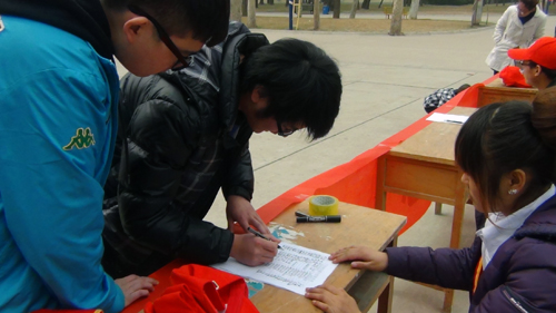 圣翰校园阳春三月,天气乍暖还寒,但我们的招募点前却热闹非凡,“给我一张!”“表格还有吗?”“请问这是什么活动?”的询问声此起彼伏,广大同学积极参与,反响热烈。在青年志愿者的感召下有许多老师和同学加入到了这个集体,我校校长刘大文教授、学生处处长杨磊也在我们报名表上签下了自己的名字。