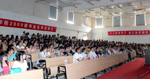 刘大文校长率先致辞,向2009届全体毕业生圆满完成大学学业、顺利毕业,表达了深切祝福和殷切期望。我院孔令梅院长也深情地发表了感言。她代表学院向即将告别母校、踏上新的人生旅途的2009届毕业生表示了最热烈的祝贺。同时,对毕业生提出了三点希望:一是希望毕业生爱岗敬业,服务社会;二是希望毕业生心系母校,时刻关注支持母校;三是秉承“圣志明德,翰实博学”的校训,做一名“志存高远,达济天下”的新儒商。她要求同学们坚信,“无论你们今后走向哪里,不要放弃对生活的信心,对理想的追求。毕业并不代表终止和结束,而是你们一生真正的开始和更大更远的进步”。同时,希望同学们未来不管遇到了什么,永远记得母校是你们一生的港湾!