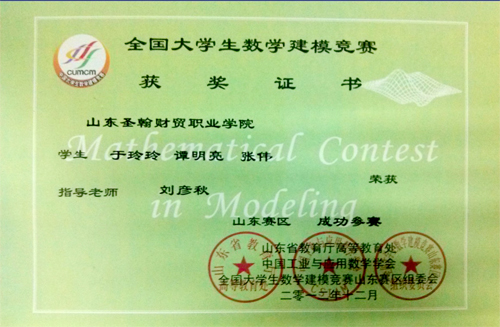 在近日结束的2012年“高教社杯全国大学生数学建模竞赛”中,在基础教学部数学教研室的杨淑英与刘彦秋两位老师的带领下我校选拔出的2支参赛代表队经过三天三夜的奋战,最终取得了优异的成绩:获得山东赛区二等奖和成功参赛奖。