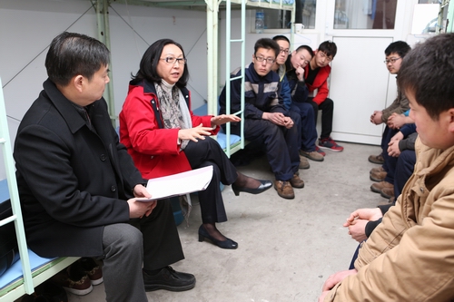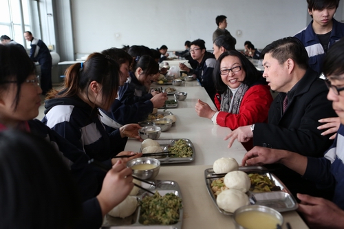 在公司人力资源部吴绪朋主管的陪同下,校领导先后参观了员工食堂、生产车间,并利用午休间隙与带队老师、实习学生进行了亲切交谈。刘淑云校长特别关心同学们的工作和生活,不时地询问大家在新环境中,工作和生活能否适应,理论与实践能否结合等问题。同学们纷纷表示:非常珍惜这次实习机会,一定会努力完成好这次实习任务。下午18时,校领导来到员工宿舍看望夜班的学生们,并给他们带去了水果与常用药品。本次我校领导深入企业看望实习学生,充分体现了我校对学生的人文关怀,让学生们体会到了圣翰大家庭的温暖。